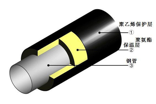 直埋預制保溫管由輸送介質(zhì)的鋼管(工作管)、聚氨酯硬質(zhì)泡沫塑料(保溫層)、高密度聚乙烯外套管(保護層)緊密結合而成。