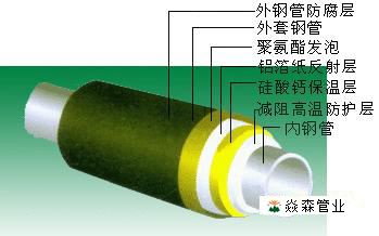 聚氨酯泡沫層:保證介質(zhì)溫度,保證外護(hù)管表面保持常溫;