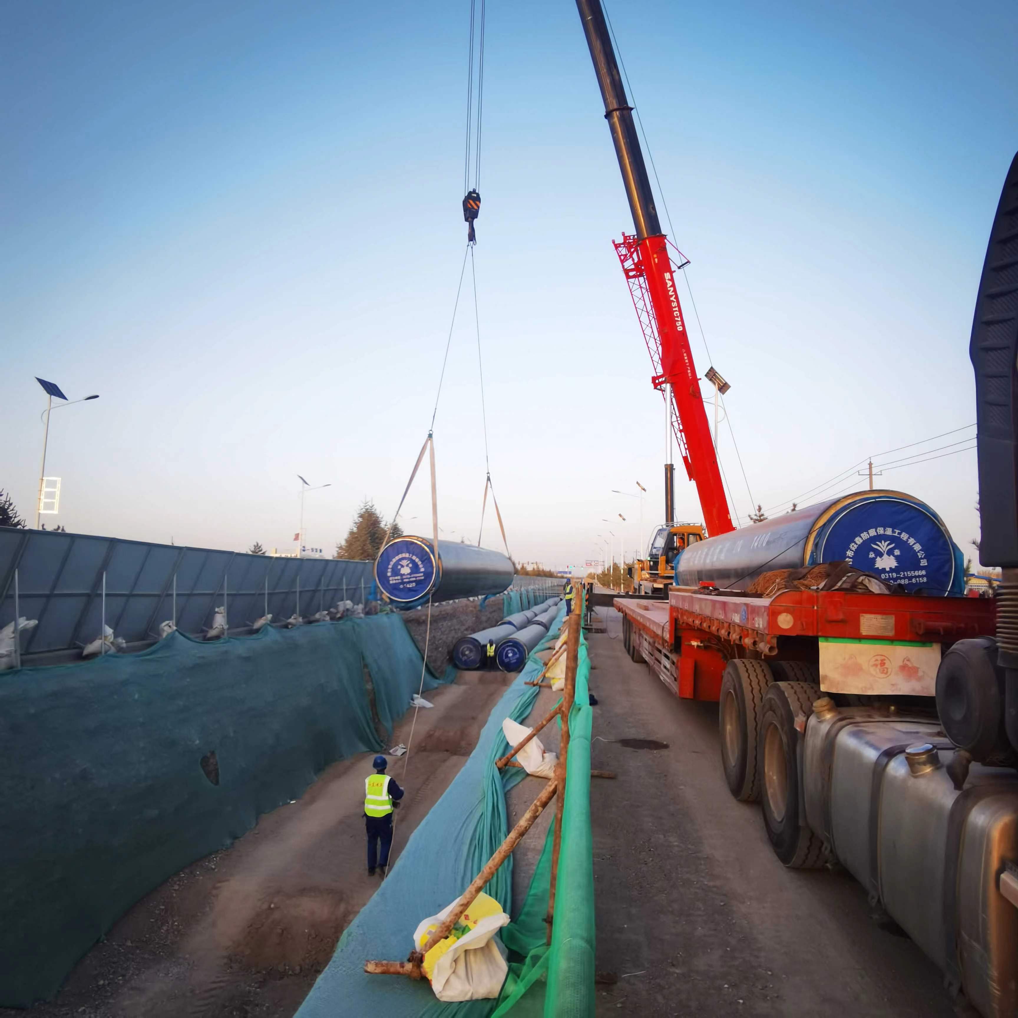 (1)保溫管材吊裝、運輸過程中,嚴禁與尖銳物、刃器等雜物接觸,以防止破壞保護層。